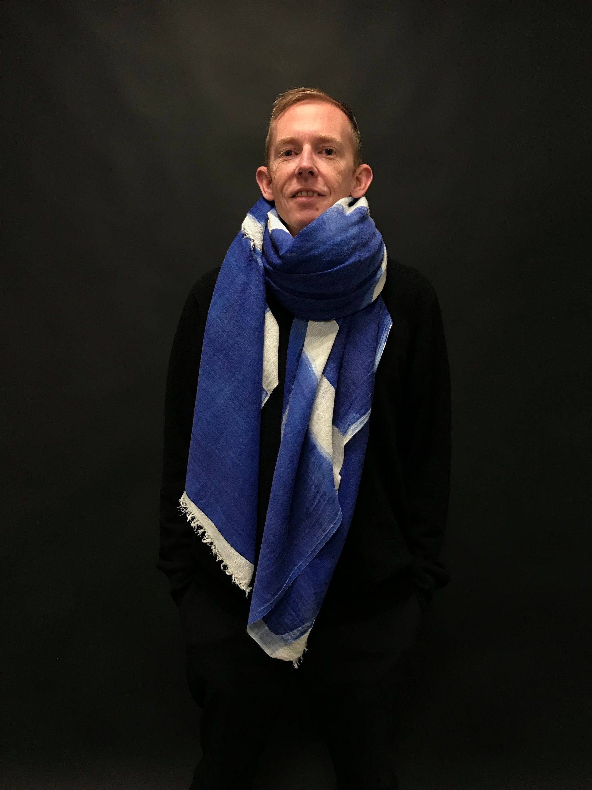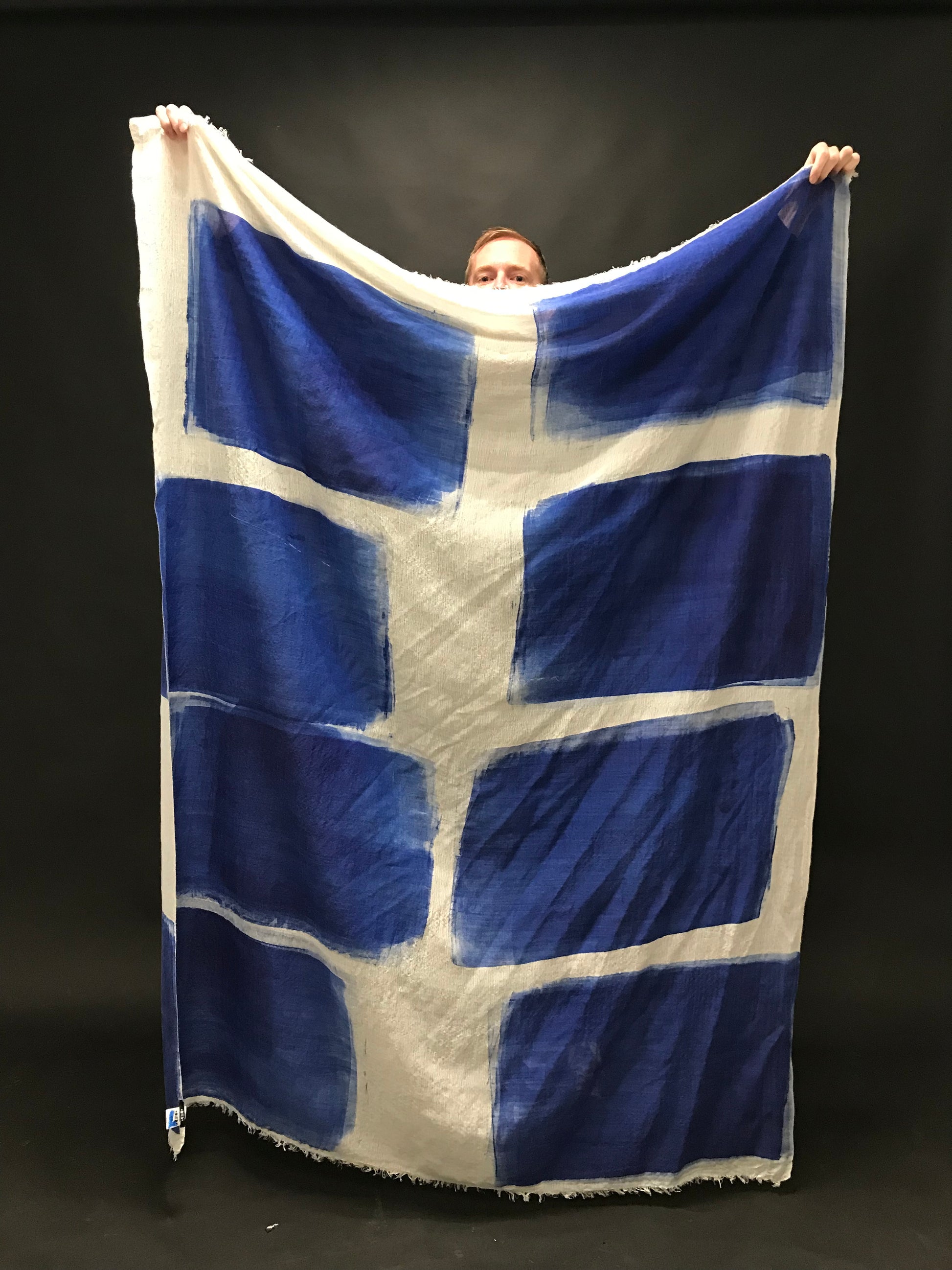 Art silk/wool scarf "PAINT BLUE" is a large scarf (size 180cm x 130cm). High quality silk/wool blend and super comfy to wear! A 'must-have' for this winter. Handscreen printed by artist Diederik Verbakel.